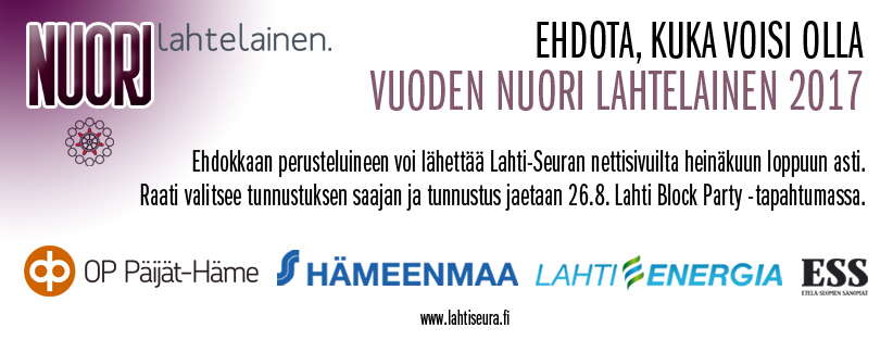 Raati valitsee tunnustuksen saajan ja se julkistetaan 26.8. Lahti Block Party -tapahtumassa.
